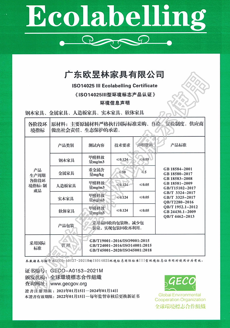 OUYULIN 歐昱林海外部及香港分公司專門處理海外事務。2006年OUYULIN 歐昱林通過ISO9001質量體系和ISO14001環境體系認證,并于2010年通過環境標志(十環)與OHSAS18000職業健康安全管理體系的認證。先后成為廣州市家協會員單位、廣東省家會員單位、協會員單位。OUYULIN 歐昱林如今品牌正廣泛被客戶所喜愛和認可,由此也已逐漸成為辦公家具行業發展潛力的企業之一。